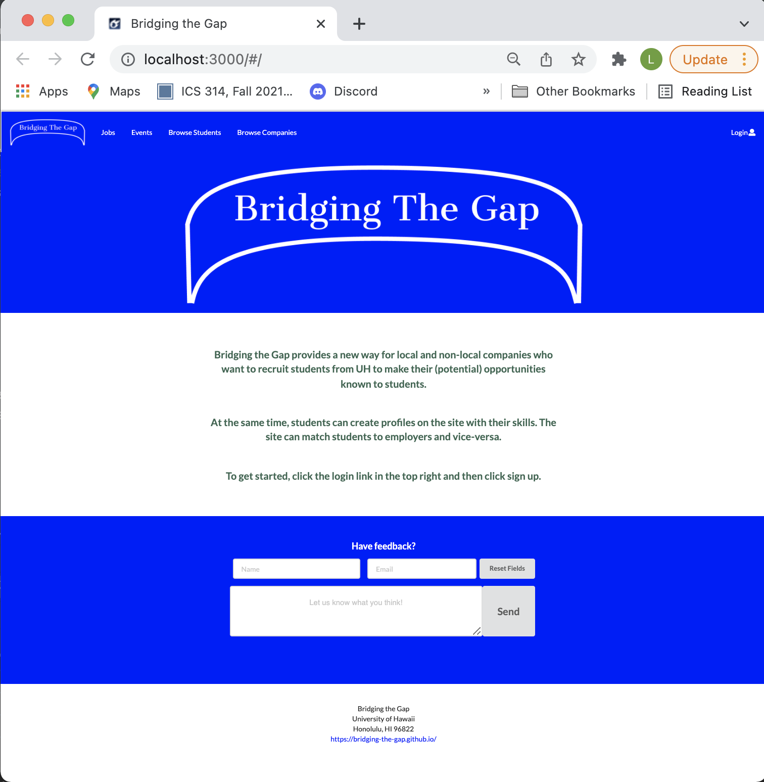 Project details: Bridging the gap is an app that seeks to solve the problem students have with finding jobs or internships at companies. This app allows students to create a profile and add their resume for companies to view. This app also gives students the freedom to search companies by location and their job offereings by skill set. I was in charge of creating the company homepage, company profile page, company profile edit and the ability to add jobs to the company profile.